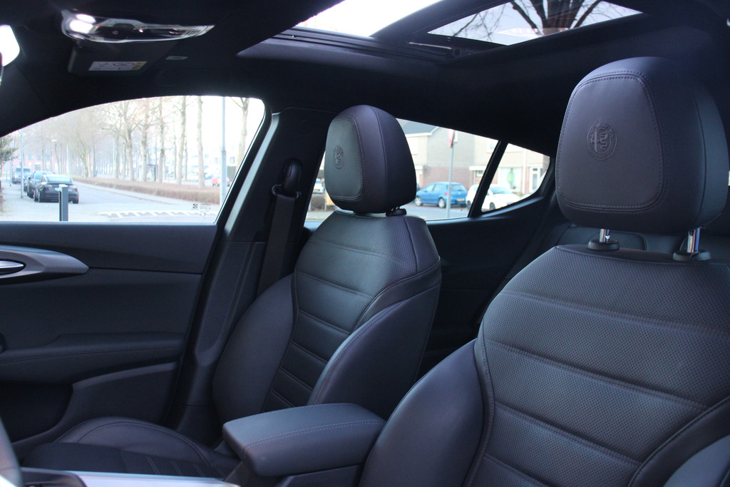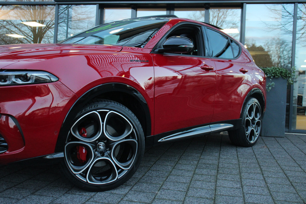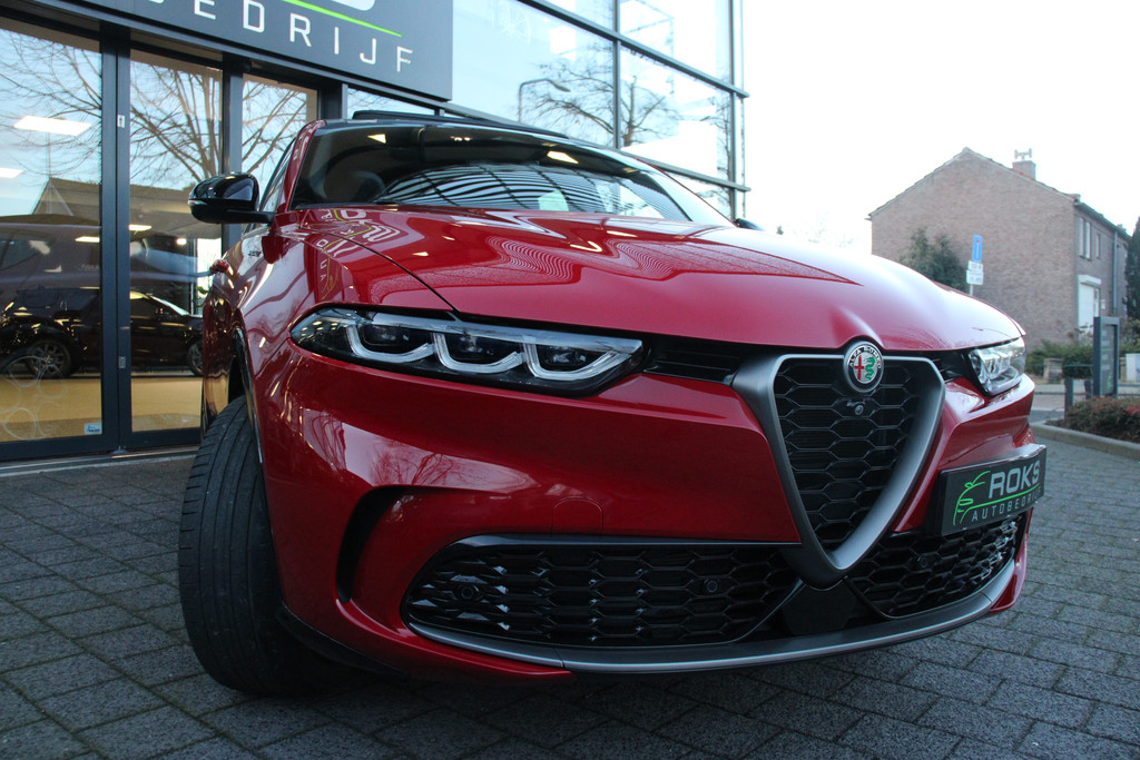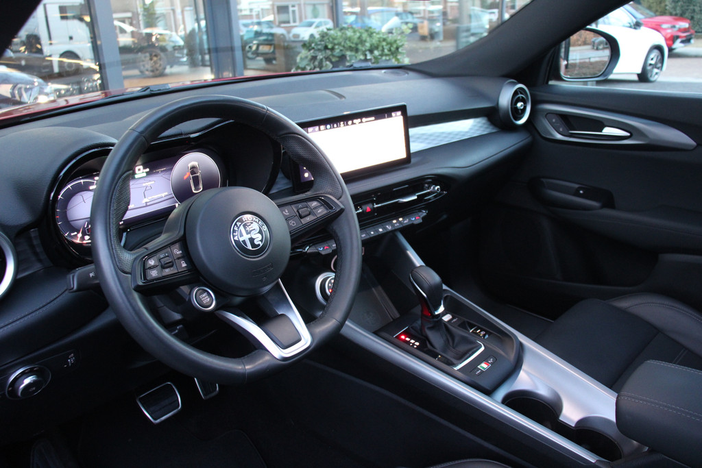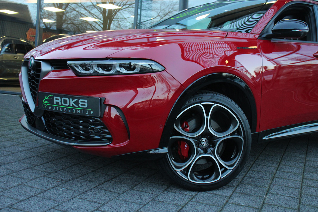 De Alfa Romeo Tonale is niet gemaakt om mee te rijden. Nee, een automobiel zoals deze heb je om van te genieten. Van zijn stijlvolle vormgeving, zijn verzorgde interieur, zijn krachtige motor en zijn uitgebalanceerde onderstel. Ongelimiteerd genieten, kilometer na kilometer. Deze Alfa Romeo Tonale heeft een hybride motor, dus een combi van brandstof en elektrisch. Een slim en milieuvriendelijk systeem dat ook nog eens lekker kostenbesparend is. Ook een fijne dosis klasse is bijgeleverd, met het lederen interieur. Doe maar luxe! Neem plaats in de verwarmbare voorstoelen en voel de weldaad in koude dagen. Laat de zon maar schijnen door het elektrisch bediende glazen panoramadak. Daglicht bij nacht? De koplampen met matrix LED-verlichting zorgen ervoor. Ook 20 inch lichtmetalen velgen, adaptief dempingsysteem, instelbare schokdempers, donker getint glas achter, in delen neerklapbare achterbank en LED-achterlichten zijn aan boord.