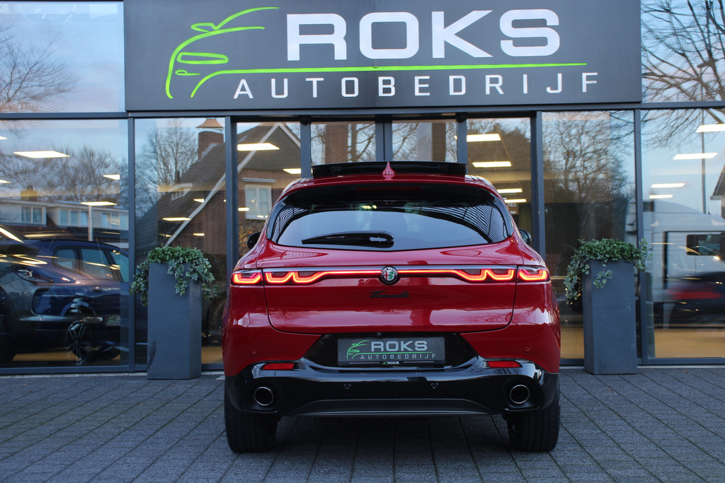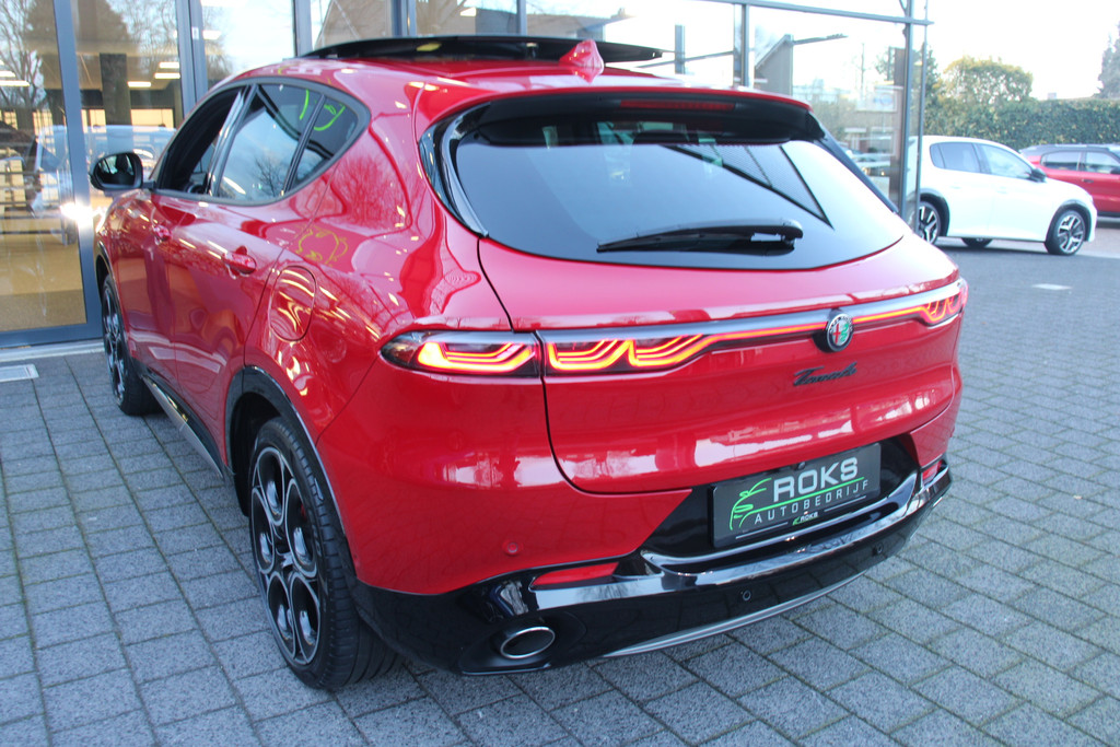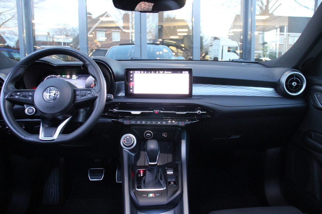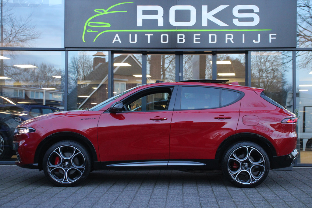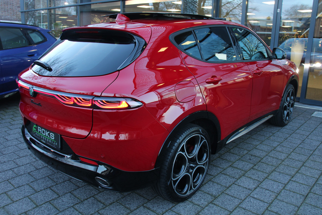 De Alfa Romeo Tonale is niet gemaakt om mee te rijden. Nee, een automobiel zoals deze heb je om van te genieten. Van zijn stijlvolle vormgeving, zijn verzorgde interieur, zijn krachtige motor en zijn uitgebalanceerde onderstel. Ongelimiteerd genieten, kilometer na kilometer. Deze Alfa Romeo Tonale heeft een hybride motor, dus een combi van brandstof en elektrisch. Een slim en milieuvriendelijk systeem dat ook nog eens lekker kostenbesparend is. Ook een fijne dosis klasse is bijgeleverd, met het lederen interieur. Doe maar luxe! Neem plaats in de verwarmbare voorstoelen en voel de weldaad in koude dagen. Laat de zon maar schijnen door het elektrisch bediende glazen panoramadak. Daglicht bij nacht? De koplampen met matrix LED-verlichting zorgen ervoor. Ook 20 inch lichtmetalen velgen, adaptief dempingsysteem, instelbare schokdempers, donker getint glas achter, in delen neerklapbare achterbank en LED-achterlichten zijn aan boord.