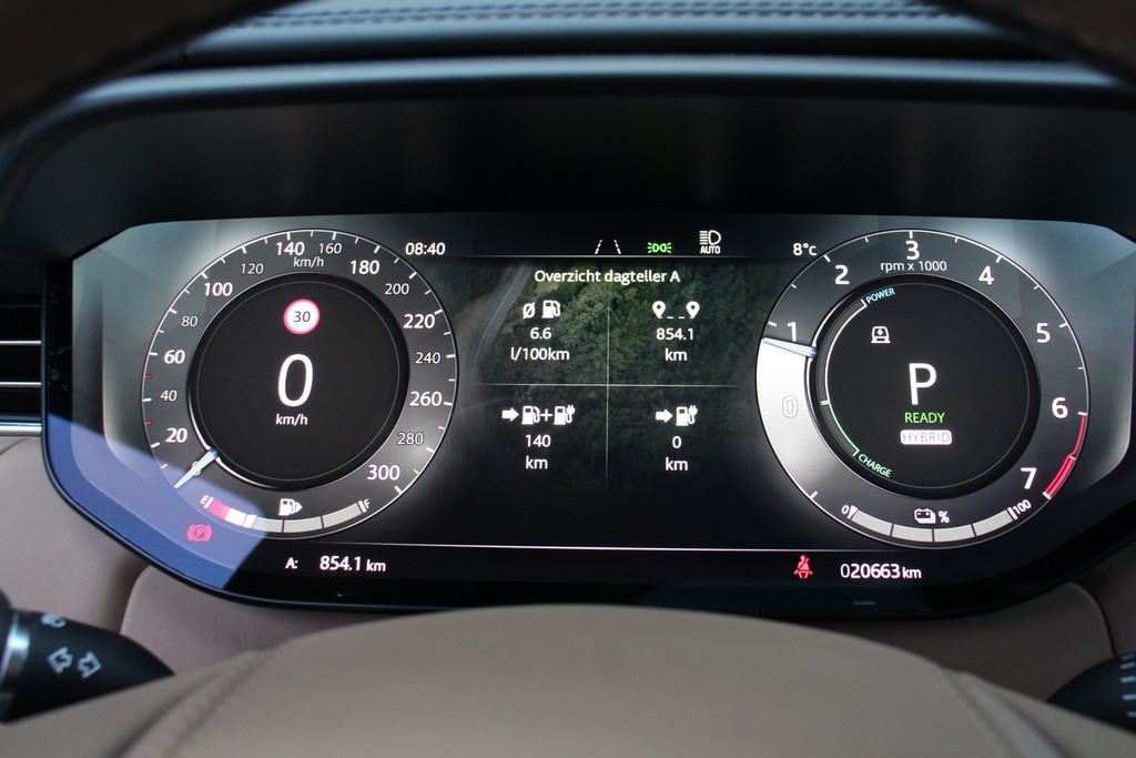 Snelheid, omgevingsinfo, navigatie en communicatie... Het digitale dashboard geeft alles realtime weer. Elk van de vier camera's op deze auto draagt bij aan het creëren van een onbelemmerd uitzicht van 360 graden rondom de auto. In één oogopslag weet u de complete systeemstatus van deze auto. Dankzij Connected Services. Ook het geluid aan boord is top-of-the-line. Het high performance audiosysteem levert superieure prestaties. Beste route, verwachte aankomsttijd: uw eigen full map navigatiesysteem vertelt u alles! Met achteropkomend verkeer waarschuwing, electronic climate control, draadloos opladen, DAB ontvangst, regensensor en keyless entry is deze Land Rover helemaal compleet.