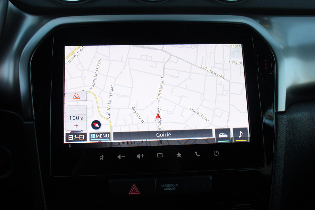 Ook achter de auto geen verrassingen bij het inparkeren. Daarvoor zorgt de achteruitrijcamera. Met adaptive cruise control houdt de auto zelfstandig afstand tot uw voorligger. Een veiligheidsverhogende optie waarmee u comfortabel onderweg bent. Zoals u van zo'n jonge auto mag verwachten, zijn hier ook de geavanceerde remote services aanwezig. Simpelweg met een app op uw smartphone controleert u op afstand de status van de auto en bedient u diverse functies. Laat u onderweg niet afleiden, de bediening van het audio-installatiesysteem en ook het full map navigatiesysteem gaat met knoppen op het stuur. Natuurlijk is de audio-installatie voorzien van DAB-ontvangst. Bij het wisselen van rijbaan kan een dode hoek ontstaan waardoor achterliggers te dichtbij kunnen komen. De achteropkomend verkeer waarschuwing geeft in dat geval automatisch een signaal. Ook is de Suzuki uitgerust met: automatische airconditioning, regensensor, keyless entry, automatisch dimmende binnenspiegel, lederen stuur en isofix-aansluiting.