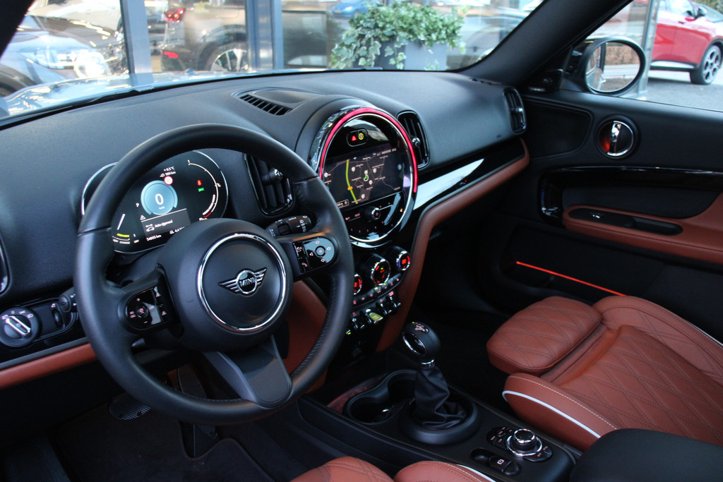 Deze zeer gunstig geprijsde MINI Countryman is zonder overdrijven echt een fantastische occasion. Uitstekende prestaties op de weg dankzij de verbrandingsmotor én elektromotor. En héél vriendelijk voor het milieu en portemonnee! Laat uw passagiers maar genieten van het lederen interieur. U voelt vooral de vrijheid die het elektrisch bediende glazen panorama dak met z'n licht oplevert. Bij de uitrusting van deze MINI horen onder meer 17 inch lichtmetalen velgen, LED koplampen, zwarte hemelbekleding, dakspoiler, donker getint glas achter en in delen neerklapbare achterbank.