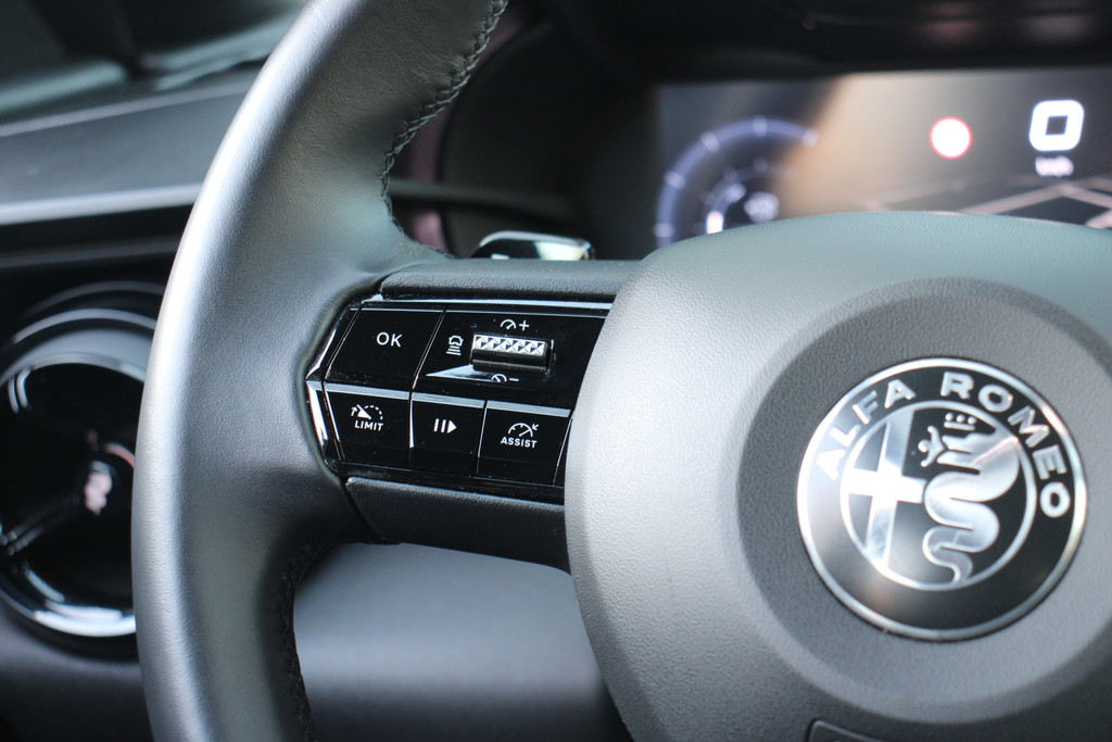 Via het digitale dashboard bent u permanent op de hoogte van alle informatie die u nodig heeft voor een veilige rit. Bij het inparkeren hoeft u het laatste stukje niet te gokken: de achteruitrijcamera kijkt voor u uit. Adaptive cruise control is veilig en comfortabel. De snelheidsregelaar houdt automatisch afstand tot het voertuig dat voor u rijdt. Filerijden? Doodvermoeiend. Daarom helpt de file assistent zo nodig een handje. Door automatisch afstand te houden, en te stoppen als uw voorligger stilstaat. Communiceren met uw auto? Dat gaat via remote services. Met uw smartphone maakt u waar dan ook contact om allerlei functies te checken of te activeren. Deze Alfa Romeo is voorzien van navigatiesysteem, WIFI-hotspot, automatische airconditioning, schakelpaddles aan het stuur, regensensor en keyless entry.