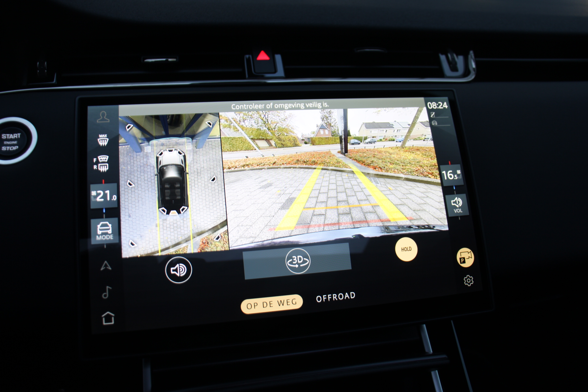 Met het digitale dashboard heeft u essentiële info in beeld. Altijd, overal. Met de hulp van vier camera's, biedt de 360 graden camera op deze auto een panoramisch zicht, wat bijzonder nuttig is bij het parkeren en manoeuvreren. Adaptive cruise control is een comfortabele en veilige optie. Het systeem reguleert de snelheid en houdt automatisch afstand tot uw voorligger. Ook het geluid aan boord is top-of-the-line. Het high performance audiosysteem levert superieure prestaties. Geen gehannes met snoertjes en kabels, u laadt uw smartphone automatisch op met de draadloze telefoonlader. U bent in deze Land Rover ook voorzien van full map navigatiesysteem, achteropkomend verkeer waarschuwing, automatische airconditioning, schakelpaddles aan het stuur, DAB ontvangst en regensensor.
