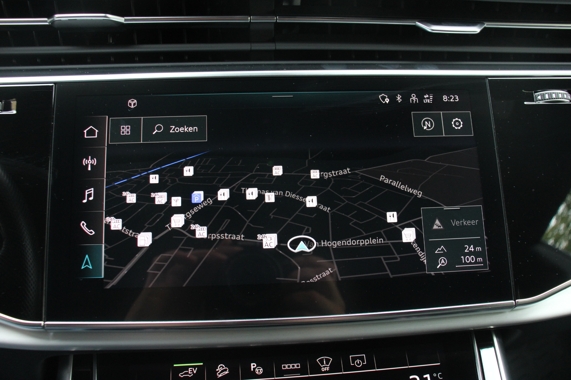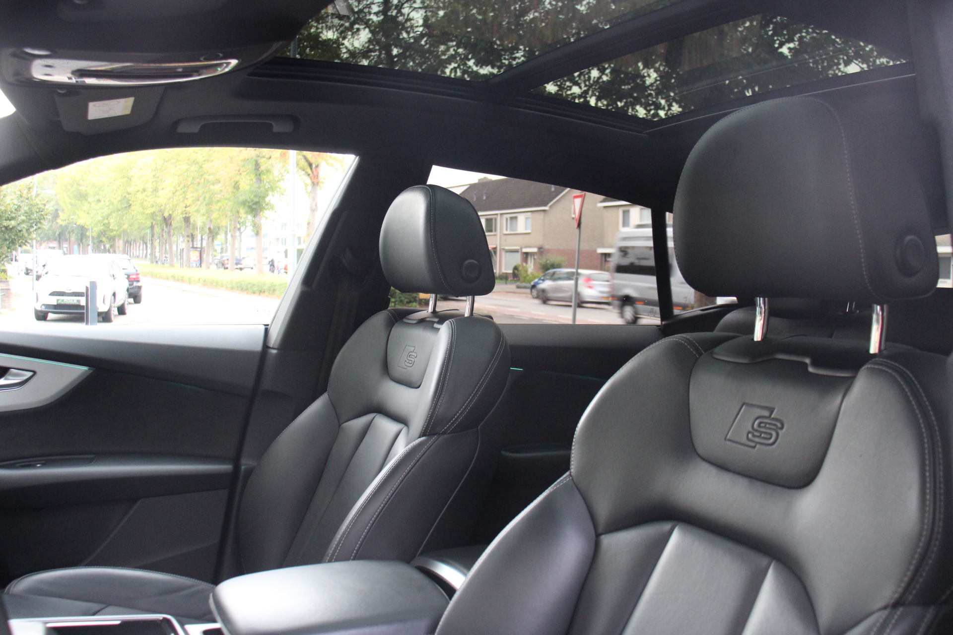 De Audi Q8 is uw trouwe partner onderweg, want hij houdt continu voor u de situatie op en om de weg in de gaten. Volautomatische veiligheidssystemen kunnen daarbij ingrijpen om u voor gevaarlijke situaties te behoeden. Blik op de weg houden? U hoeft uw hoofd niet meer te draaien om het dashboard te zien, dankzij de head-up display. U rijdt ook veiliger omdat deze auto voor u de verkeersborden langs de weg kan lezen. De belangrijkste borden worden op uw instrumentarium geprojecteerd, zodat u ze niet kunt missen. Voorzien van het Lane-keeping systeem. Ofwel: blijf automatisch in je baan. Ook helpen het dodehoekdetectie, forward collision warning system, hill hold functie, autonoom remsysteem en bandenspanningcontrolesysteem, uw rit tot een veilige rit te maken.