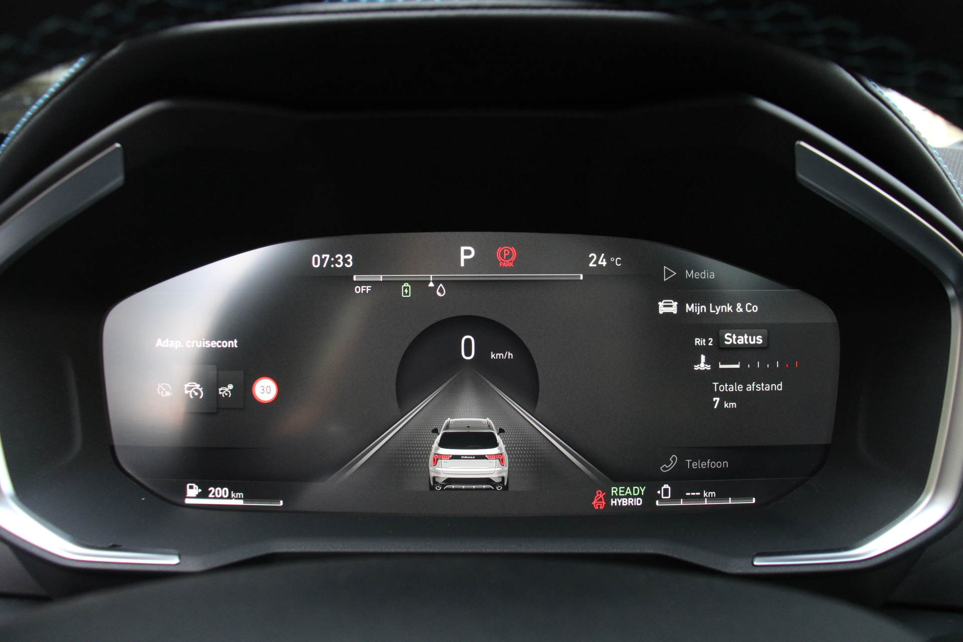 Ontdek de digitale mobiliteitswereld, met zijn dashboard dat alle noodzakelijke informatie projecteert om uw reis comfortabel en veilig te maken. Als u de adaptive cruise control inschakelt, regelt de auto zelf de snelheid en de afstand tot de auto voor u. Loopt het verkeer onderweg vast, schakel dan de file assistent in en laat het systeem zorgen voor de juiste afstand bij stilstaan en rijden. Kies de muziek waarvan u houdt, dankzij de DAB-radio klinkt het altijd geweldig. Intussen bedient u het audio-installatiesysteem en het full map navigatiesysteem met de knoppen op het stuur of met uw stem. Onderweg laadt u uw smartphone snoerloos op met behulp van de draadloze oplaadmogelijkheid voor telefoons. Ook is de Lynk & Co uitgerust met: WIFI-hotspot, achteropkomend verkeer waarschuwing, automatische airconditioning, parkeersensoren achter, regensensor en keyless entry.