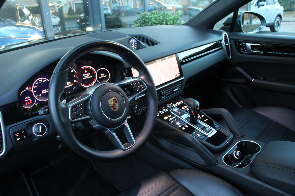Hij zorgt voor een ontspannen rijervaring, deze Porsche Cayenne Coupé. Het is een auto uit 2021, op de teller staat een kilometerstand van 47719. Uitstekende prestaties op de weg dankzij de verbrandingsmotor én elektromotor. En héél vriendelijk voor het milieu en portemonnee! Ze zeggen weleens dat stijlvol en handig niet gauw samengaan. In dit geval wel: kijk maar naar het lederen interieur en de elektrisch bedienbare achterklep. Zit u goed? De stoelen zijn eenvoudig instelbaar dankzij de elektrische bediening met geheugen. Klinkers of asfalt? U merkt het verschil niet door de luchtvering. Wat een heerlijk ruim gevoel en zoveel licht geeft dat glazen panoramadak! Dankzij de xenonverlichting profiteert u in het donker van een krachtige en heldere lichtbundel. Bij de uitrusting van deze Porsche horen onder meer 20 inch lichtmetalen velgen, LED koplampen, adaptief dempingsysteem, warmtewerend glas, trailer assistent en dakspoiler.