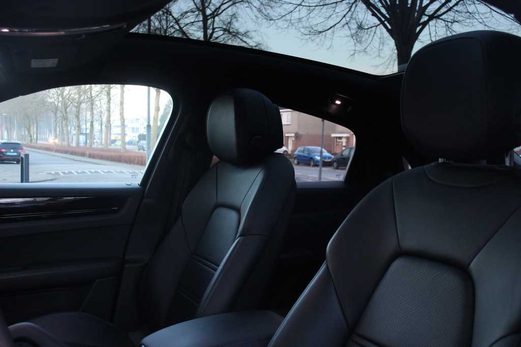 Aan boord van deze Porsche houden verschillende geavanceerde systemen voor u de weg in de gaten. Ze waarschuwen u voor noodsituaties en kunnen in een aantal gevallen ook zelf ingrijpen. U rijdt ook veiliger omdat deze auto voor u de verkeersborden langs de weg kan lezen. De belangrijkste borden worden op uw instrumentarium geprojecteerd, zodat u ze niet kunt missen. Met het Lane-keeping systeem komt u nooit per ongeluk buiten de rijstrook. Onbedoeld bumperkleven is er niet bij, dankzij de forward collision warning. Die waarschuwt direct als een botsrisico met uw voorligger dreigt. De auto is ook uitgerust met hill hold functie, brake assist en bandenspanningcontrolesysteem.