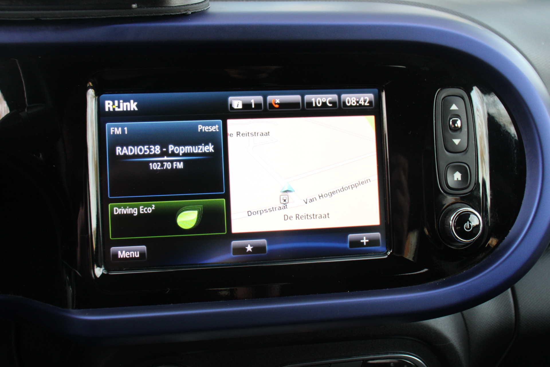 Of het buiten nu warm is of koud, dankzij automatische airconditioning is het binnen altijd behaaglijk. Parkeerplekken worden er niet ruimer op. Maar met de aanwezige parkeersensoren krijgt u deze Renault Twingo zonder problemen op z'n plaats. Het luxeniveau in deze Renault is niet alleen gericht op comfort, maar ook op uw veiligheid. Tal van sensoren helpen u om de omgeving in de gaten te houden. De automatisch inschakelbare verlichting zorgt dat automatisch de verlichting wordt ingeschakeld als het donker wordt, wat bijvoorbeeld in tunnels erg handig is. En de regensensor zet de ruitenwissers aan zonder dat u eraan hoeft te denken. De cruise control houdt de snelheid constant. Dat is relaxt reizen! En deze auto heeft ook dashboard met spraakbediening, navigatiesysteem, lederen stuur, centrale deurvergrendeling met afstandsbediening en boordcomputer als standaard uitrusting.